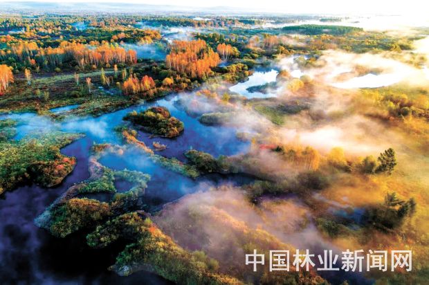 我国湿地面积8.04亿亩,国际湿地57处、湿地自然保护区602个、国家湿地公园898个,湿地保护率达52%。图为黑龙江伊春新青湿地公园。 伊春森工集团供图